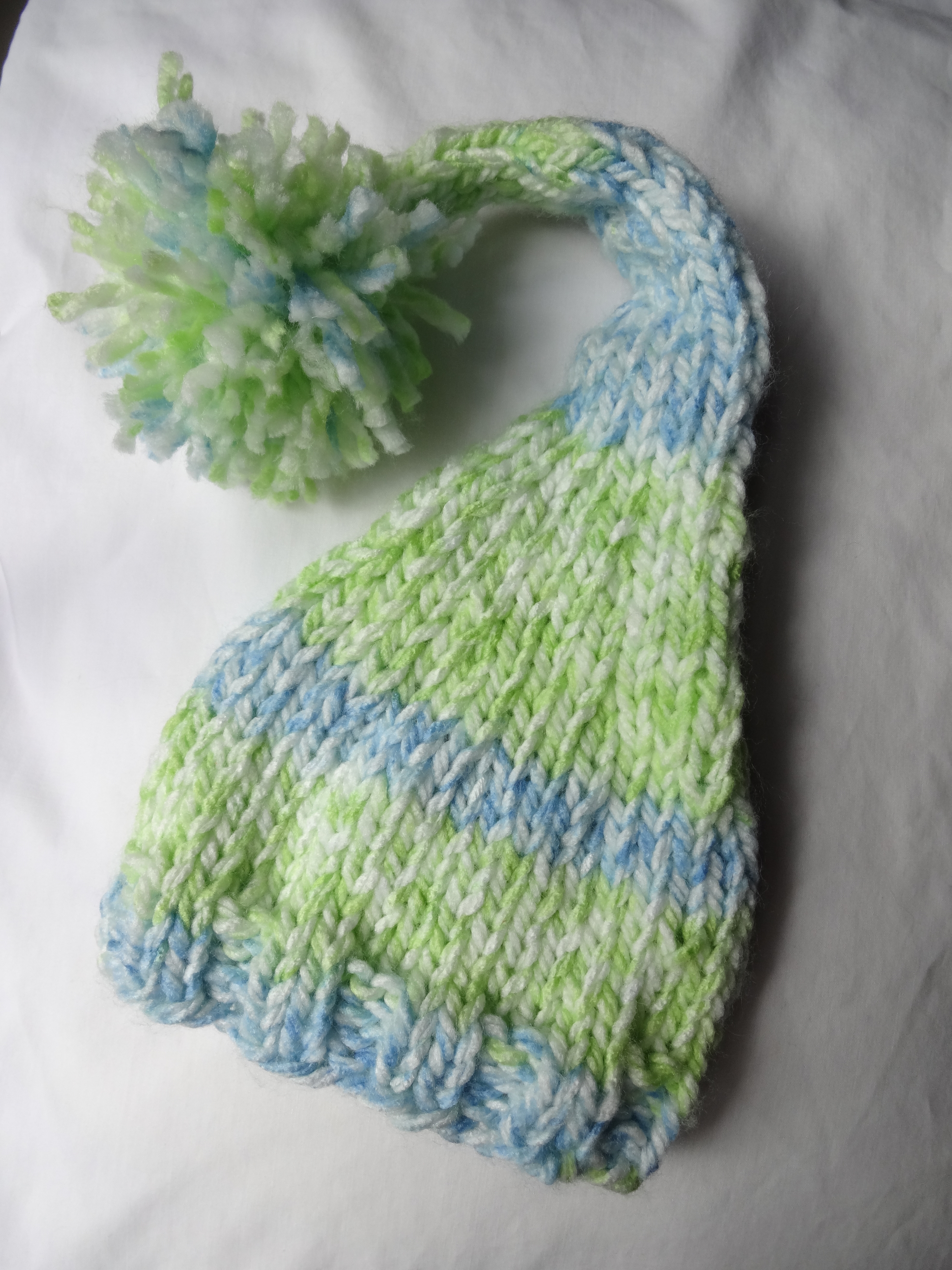 So, to that point, one of my most popular hats is the one shown to the right – with a pom pom added.  I’ve sold more of these than any other (without the pom) but I now have a photo of it with a pom for added variety.  I’ve also done it in the gnome style, below.   On etsy – and previously on here somewhere, it’s listed as the “Seaside”.   I wasn’t feeling particularly imaginative that day (it’s the name of the yarn color!)   But now I think it should be named “David” in honor of the coolest older brother anyone could ever have had, as I’m sure he would have been.