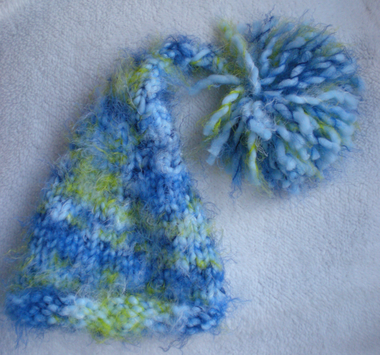 Another road trip to camp today, so to keep busy, I made this gnome hat from some new yarn I picked up last night. I wasn’t sure how it would be to work with, and how it would knit up, b